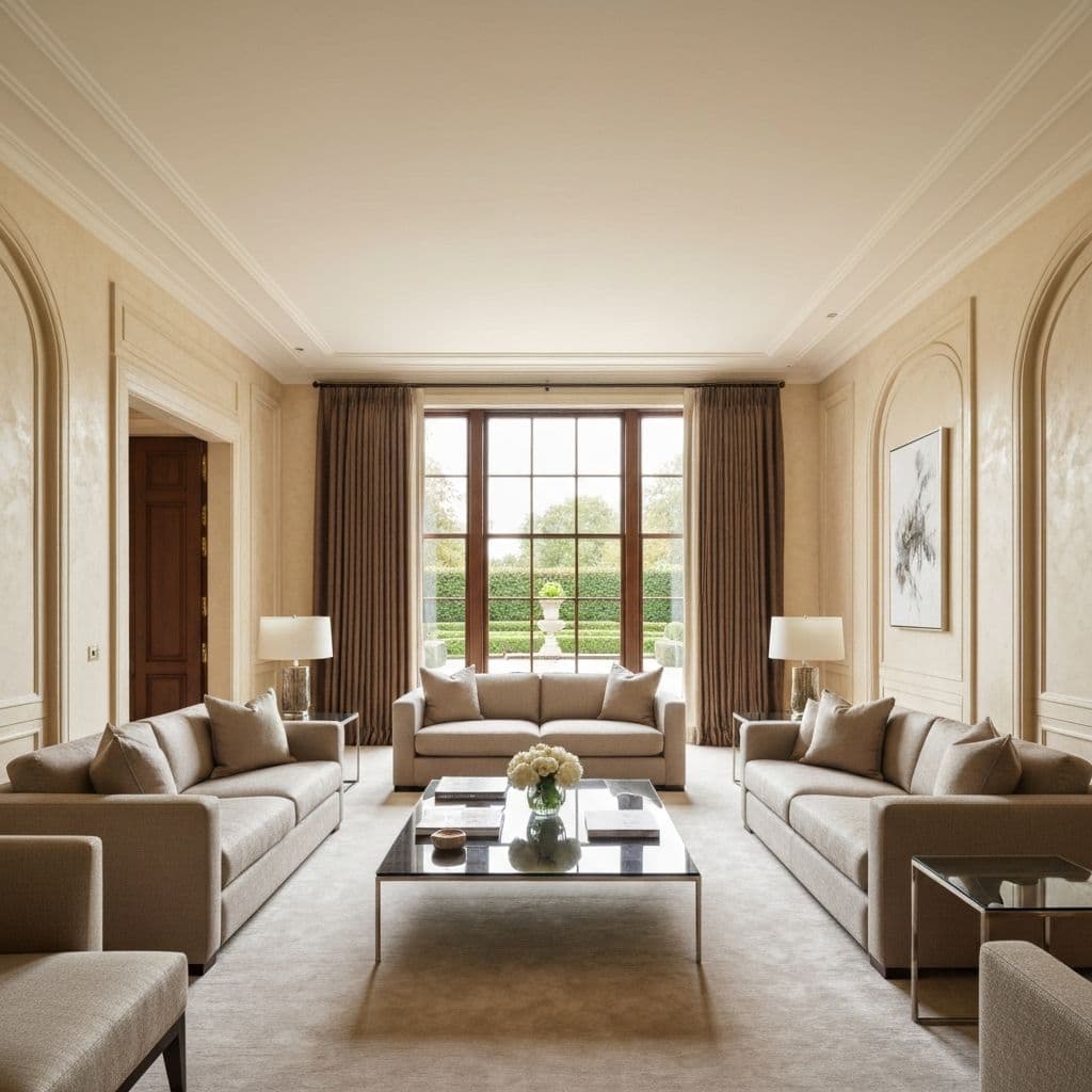 Классическая полированная венецианская штукатурка с глубиной, мягким свечением и красивым отражением света. Идеальна для элегантных интерьеров и премиальных пространств в Барселоне.